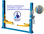 Гарантия 36 мес – наш монтаж, 24 мес – самостоятельная установка. Верхняя синхронизация (чистый пол). Ограничитель подъёма при достижении максимальной высоты. Высота от пола до ограничительной планки 3442 мм. Съем со стопоров ручкой на одной колонне (экономия времени). Поднимает все легковые+Джипы (h=110÷1825 мм). Между колоннами 2800 мм. 220/380В. г/п. 4 тонны.