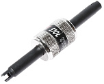 Позволяет заменить клапаны кондиционера без разгерметизации системы и потери хладагента. В комплект входит фиксирующее приспособление, которое удерживает шток клапана во время замены клапана.