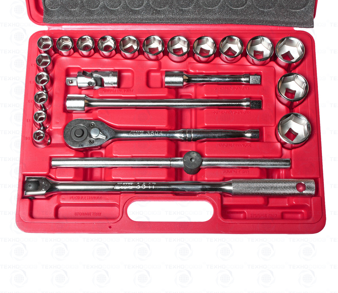 - 18 ед. головка 1/2: 10, 11, 12, 13, 14, 15, 16, 17, 18, 19, 21, 22, 23, 24, 27, 29, 30, 32 мм.