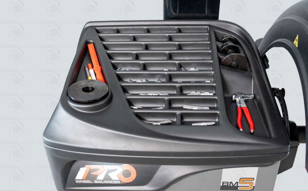 Стенд балансировочный модель iPRO BM5. Автоматический. Цветной монитор 24’’ для графического отображения всех процессов и настроек. Микрокомпьютер с мощным процессором. Высокая точность измерений. ОС Android. Качественная 3D-графика. Возможность обновления ПО. Эргономика и удобство использования. Измерение ширины колеса производится ультразвуковым сенсором. Электромеханический тормоз. Автоматический доворот колеса до места установки груза. Лазерным линейный указатель. Возможность установки груза линейкой. Установка грузов на «6 часов» и «12 часов». Диаметр обода балансируемого колеса 12-28". Вал Ø - 40мм.