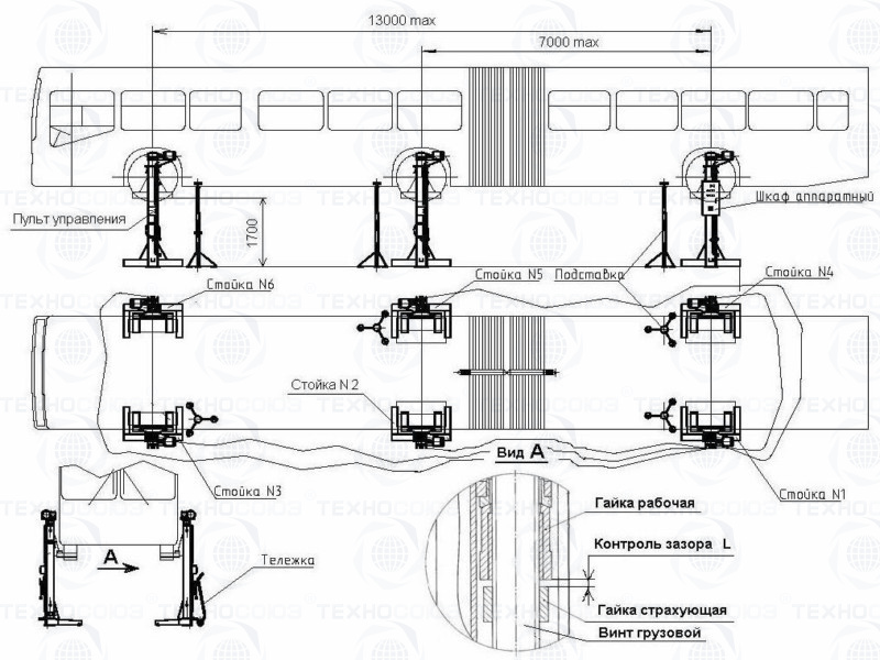 Подъёмник передвижной ПП-30, шестистоечный г/п 30 т