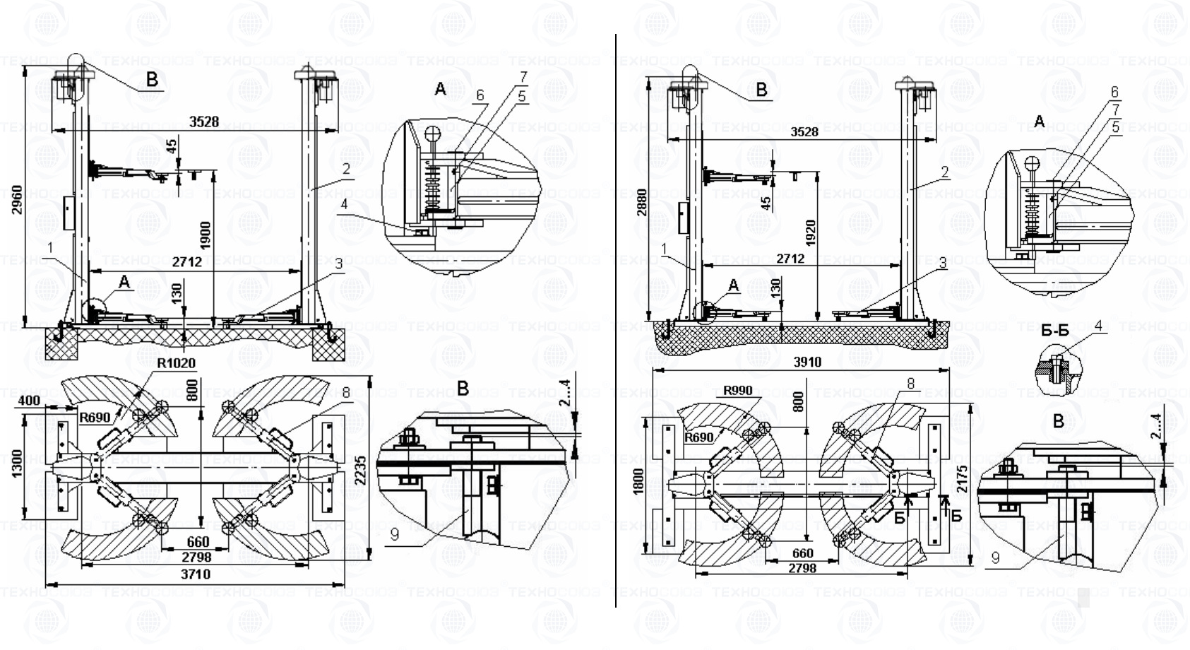 Подъемник ПР-3 устанавливается на бетонируемое в пол основание не входящее в комплект поставки и поставляемое по отдельному заказу.