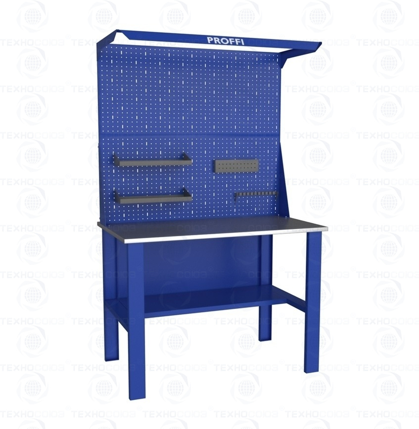 Слесарный стол серии PROFFI используется для проведения сборки и слесарных работ в специализированных мастерских, гаражах и различных образовательных заведениях. При работе с изделием необходимо помнить, что максимальная нагрузка, которую сможет выдержать столешница, равна 300 кг. Ширина стола составляет 1200 мм, высота — 870 мм, а глубина — 700 мм. Общий вес изделия — 54 кг.