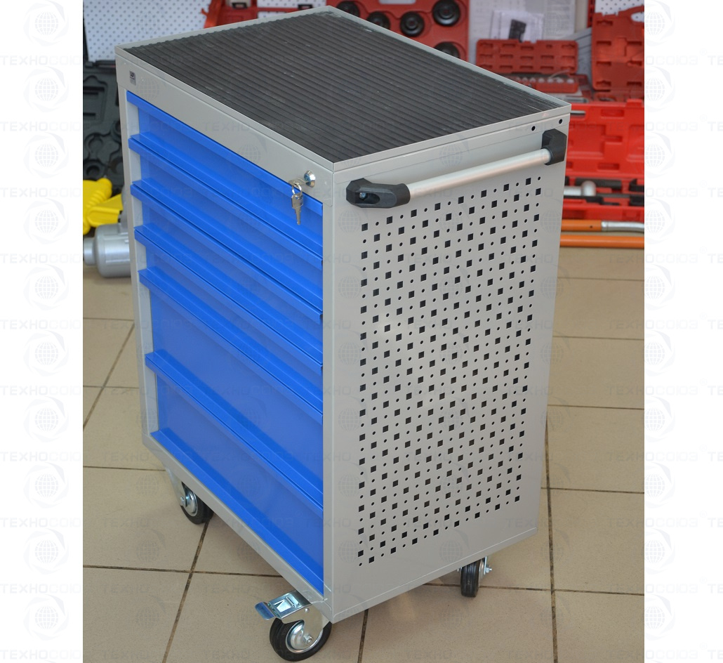 Данный набор инструмента включает: тележку инструментальную с 4 ящиками, комбинированные ключи, наборы головок и отверток, клещи, утконосы, щипцы и трещотку - это тот самый минимум, который понадобится при работе в гараже или СТО.